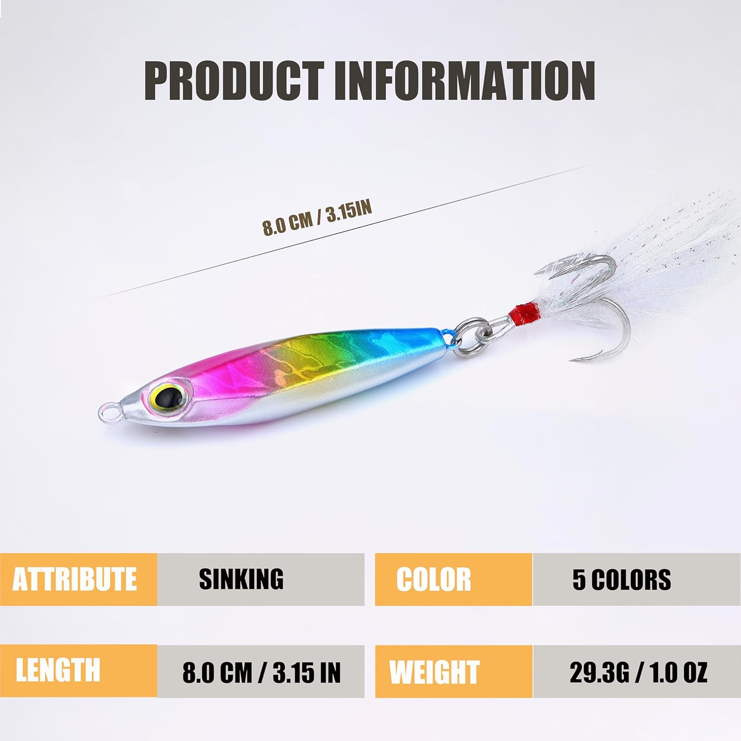 Introducing the ultimate fishing lure set for every angler’s arsenal – the 5pcs Fishing Lures Fishing Gear Jig! Whether you’re targeting Bass, Trout, Tuna, Kingfish, Snapper, or Cobia, these versatile lures are designed to attract a wide variety of fish species in both freshwater and saltwater environments.